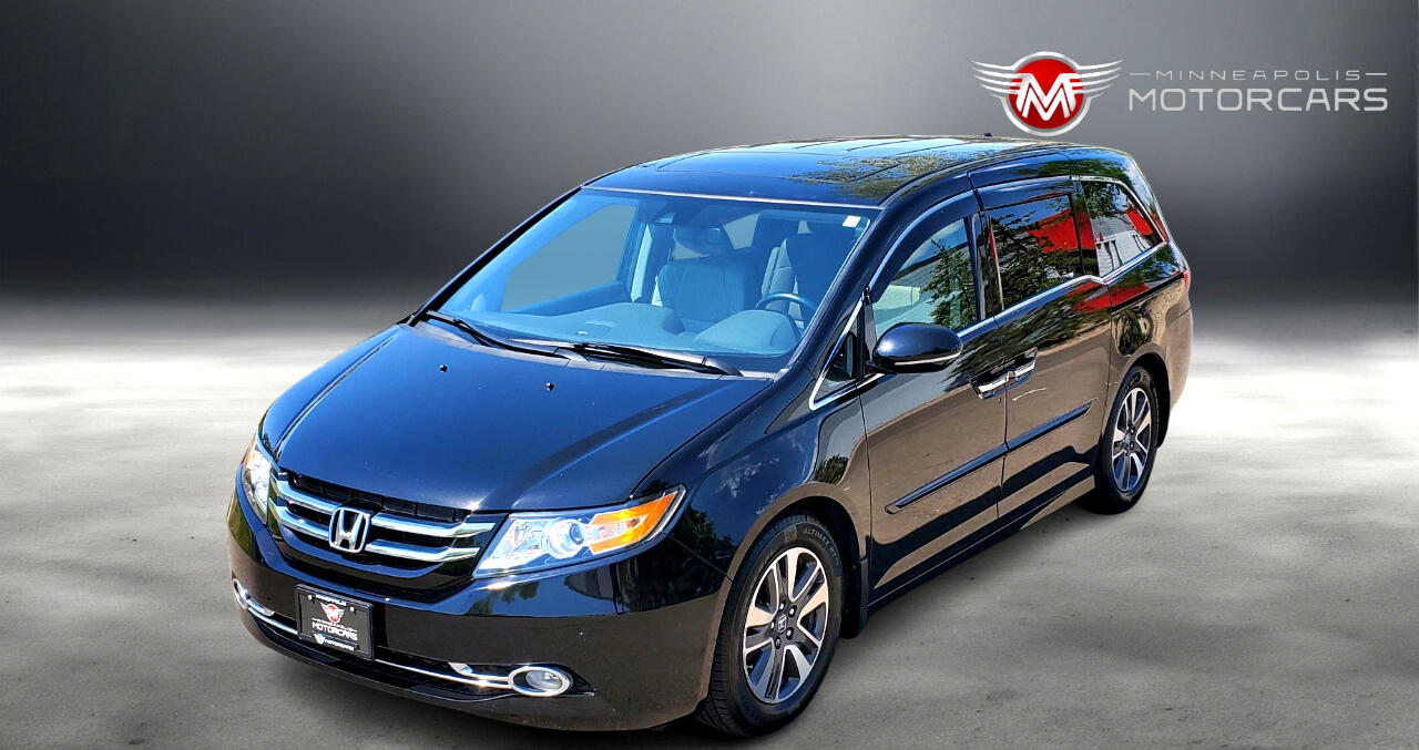 ***** 2014 Honda Odyssey Touring Elite with DVD Entertainment ***** Carfax Certified 1 OWNER and No Accidents ***** Black on Gray ***** Recently Serviced Including Timing Belt and Water Pump Service ***** Enjoy this Well Equipped Odyssey Touring Elite ***** Indoor Showroom ***** Carfax report with every vehicle. We buy, sell, trade and offer financing. Affordable service warranty contracts available. ***** Please schedule a showing for your convenience. ***** BY APPT ***** Contact Sam @ 612-707-2100 ***** Small, Simple and Nice Cars. ***** Enjoy your car buying experience again! Thank You for Visiting Minneapolis Motorcars!*****